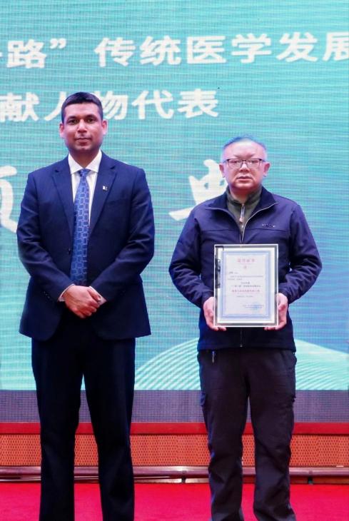 Mohammad Shahbaz, Vice President of the WHO Academy of Traditional Medicine Sciences, presented the "Advanced Individual in Education and Technological Innovation" Award to Professor Zhou Ji. The award recognizes his dedication to research on the component extraction and dosage form development of natural medicines, with his research results actively applied to experimental teaching.
